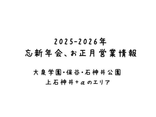 2025-2026年 年末年始 営業情報 [大泉学園・保谷・石神井公園・上石神井エリア・+α ]