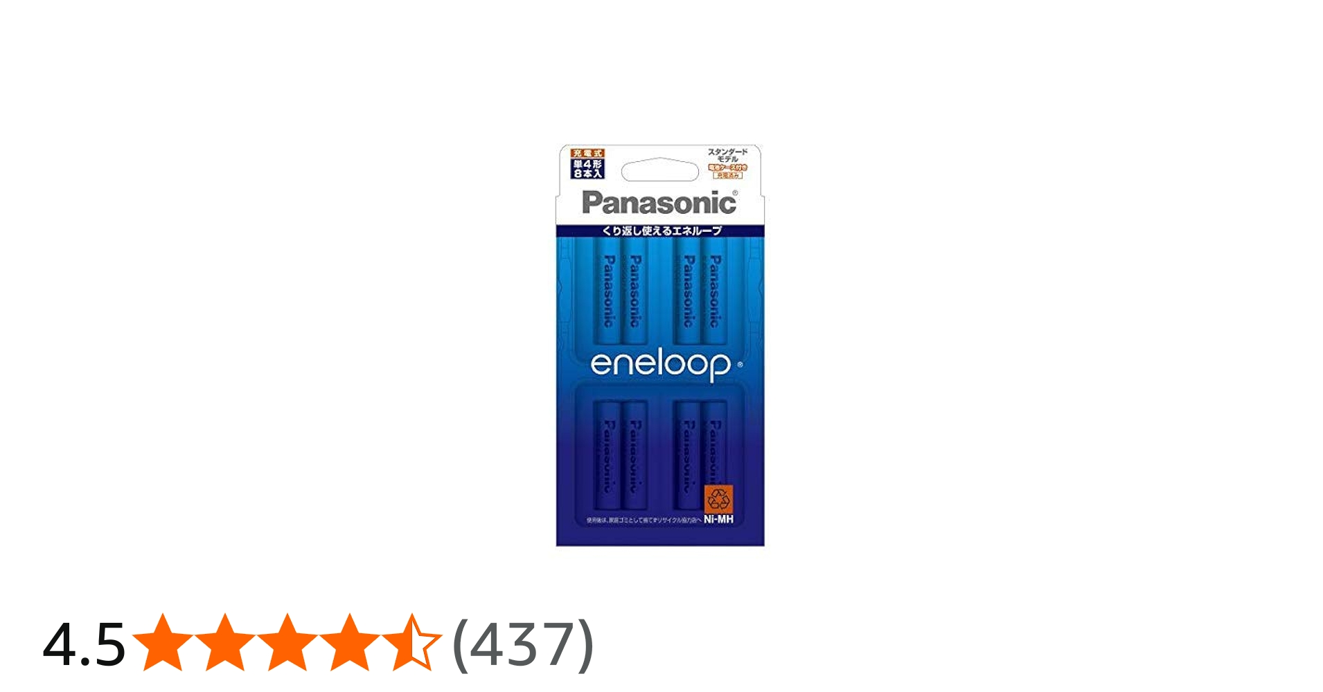 パナソニック(Panasonic) ニッケル水素電池 単4形(8本入)Panasonic eneloop スタンダードモデル BK-4MCC/8C